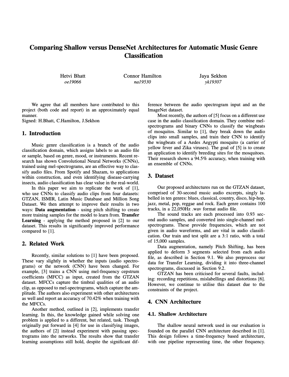 Music genre classification is a branch of the audio classification domain, which assigns labels to an audio file or sample, based on genre, mood, or instruments. Recent research has shown Convolutional Neural Networks (CNNs), trained using mel-spectrograms, are an effective way to classify audio files. From Spotify and Shazam, to applications within construction, and even identifying disease-carrying insects, audio classification has clear value in the real-world.